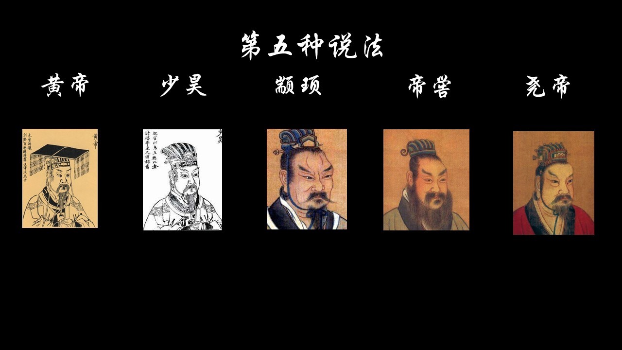 第五种说法是:黄帝、少昊、颛顼、帝喾、尧。