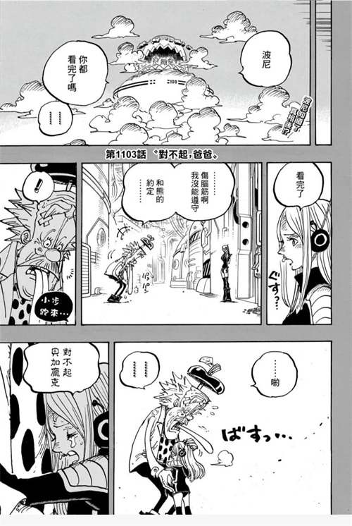 在漫画1103话中,波尼与熊的相遇成为了焦点。熊作为曾经的王下七武海,一直备受关注。而波尼的身份也充满神秘感。通过这一话的描绘,我们得以一窥波尼与熊之间复杂的关系。