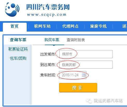 绵阳——武都: 1、百度搜索:四川汽车票务网