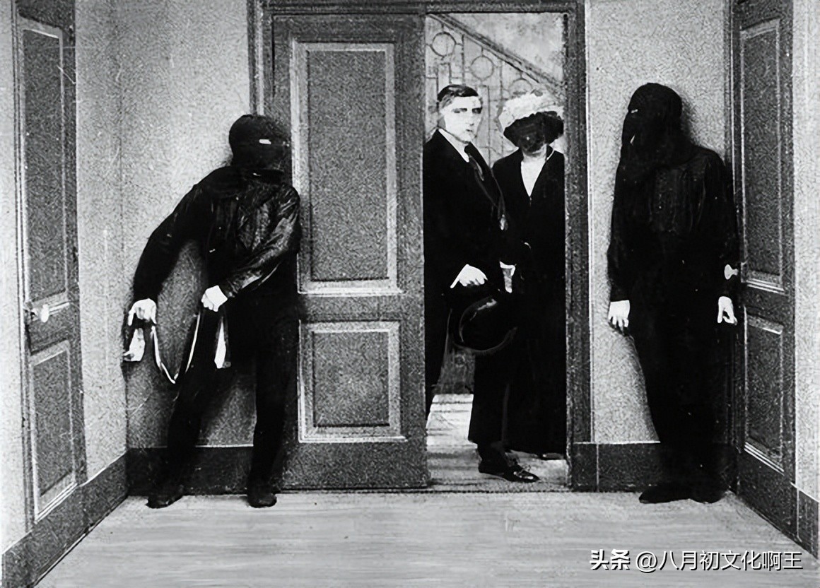 这张照片其实是1913年的悬疑电影fantômas :in the shadow of the guillotine的剧照而已。