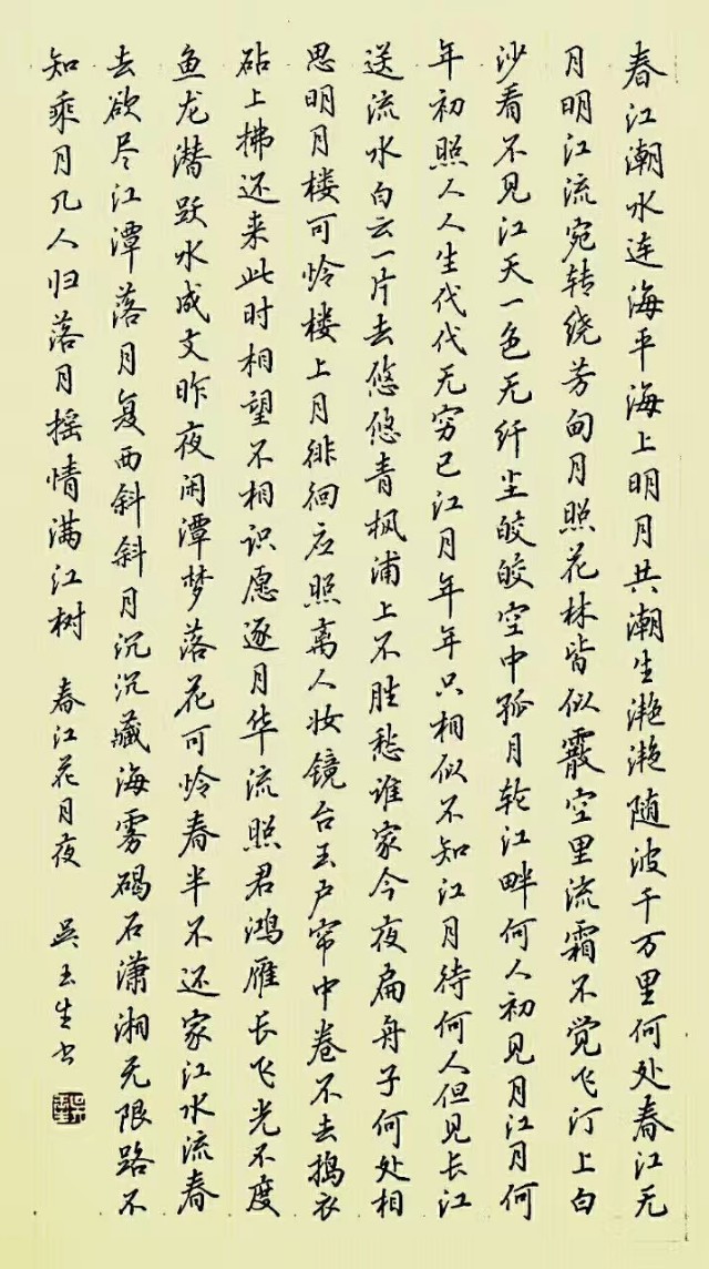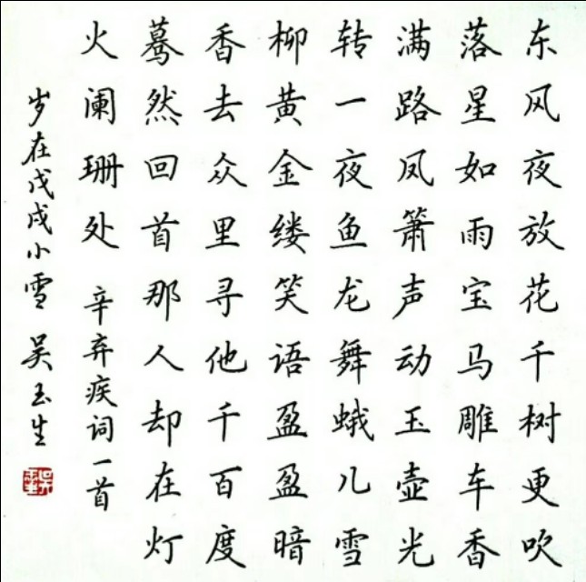 吴玉生老师被称为中国硬笔行楷第一人,他的字体美观大方,清秀典雅,很符合大众的审美,让人一看就有想学习模仿的冲动,2019年4月有幸在书法报组织的硬笔书法骨干教师研修班上听吴老师的讲座,受益匪浅。现收录吴老师部分作品,以飨书友。