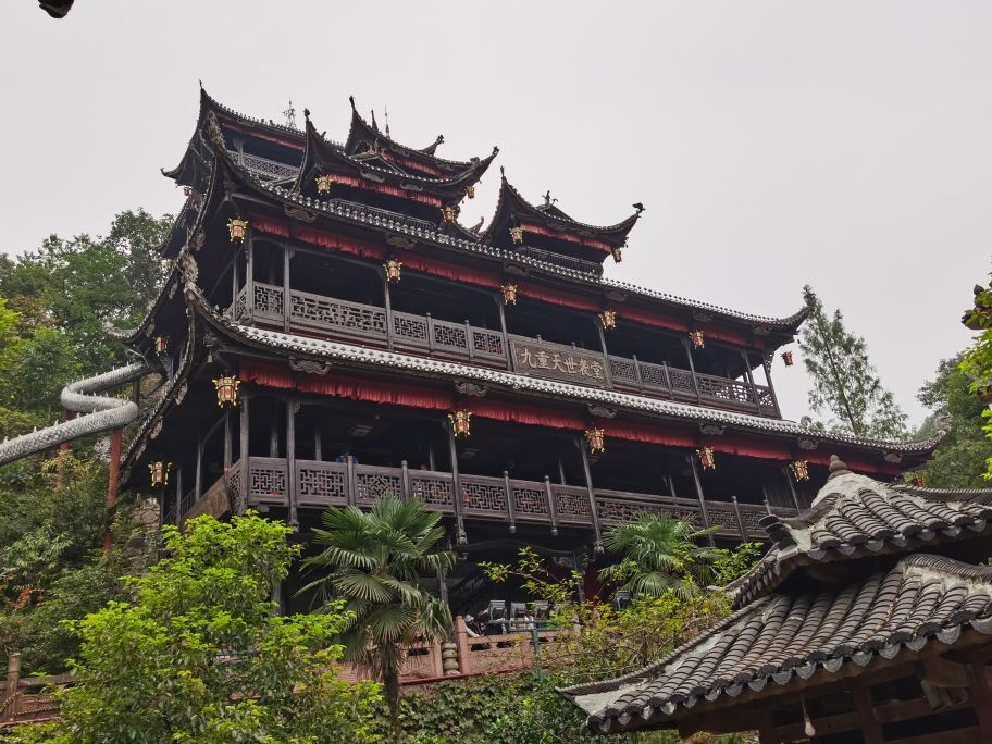 土司城,始建于清雍正八年(公元1730年),距今近三百年历史,是西南地区唯一保存完好的古城。永定茅岗司第十五世土司覃纯一顺应潮流,三次上书请求改土归流,朝廷嘉其忠顺。封为世袭千总,准建世袭堂,修土司城堡。土司城,占地120多亩。集吊脚群楼、走马转角楼重叠组合,融为一体,是土家族古代文明的发祥地和凝聚地。城内遗存大量的珍贵文物素有“南方紫禁城之称”。2002年建筑奇观“九波重天吊脚楼”和“千人茅古斯表演”一并载入世界吉尼斯记录,是国家4A级景区。张家界土司城内的九重天吊脚楼是世界上最高的土家吊脚楼,高度达到48米。