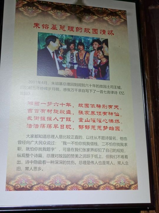 土司城冲天楼门前石碑有朱总理的题字,馆藏有朱总理的旧时求学时的相片,还有朱总理的题诗: