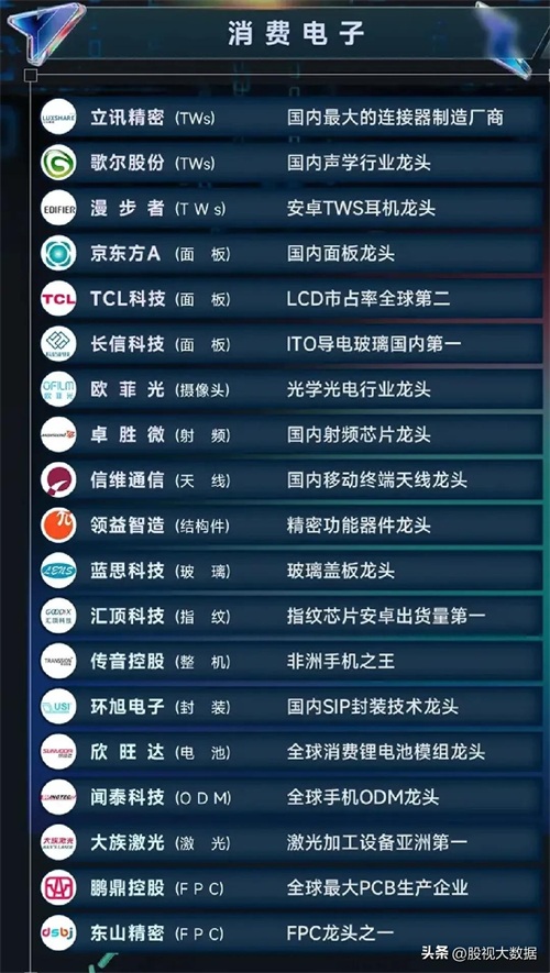 消费电子类龙头代表:(21家)