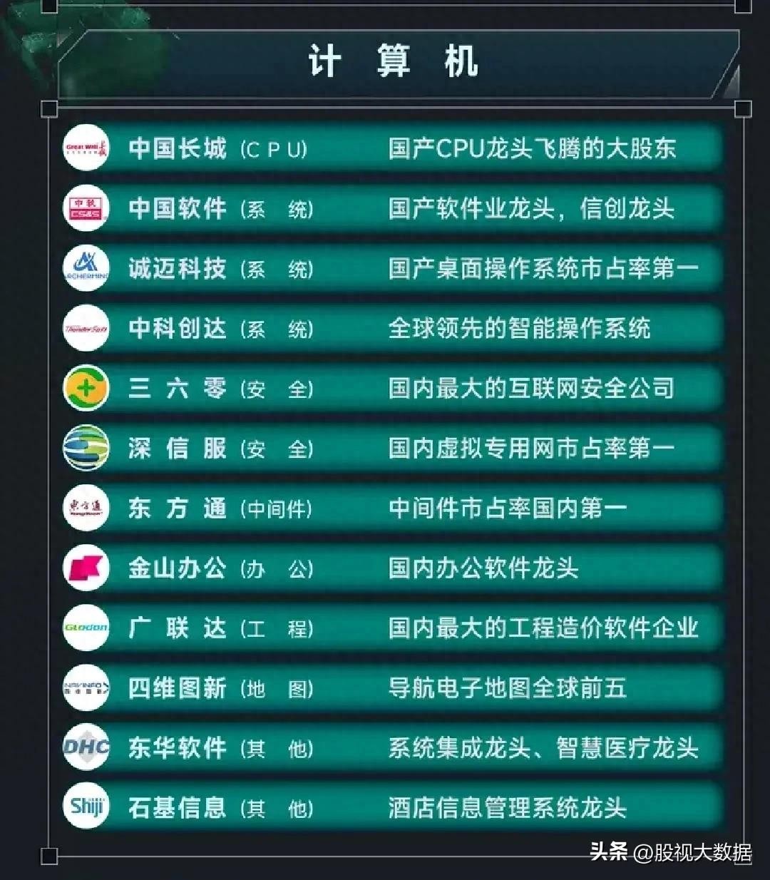 计算机行业龙头代表:(12家)