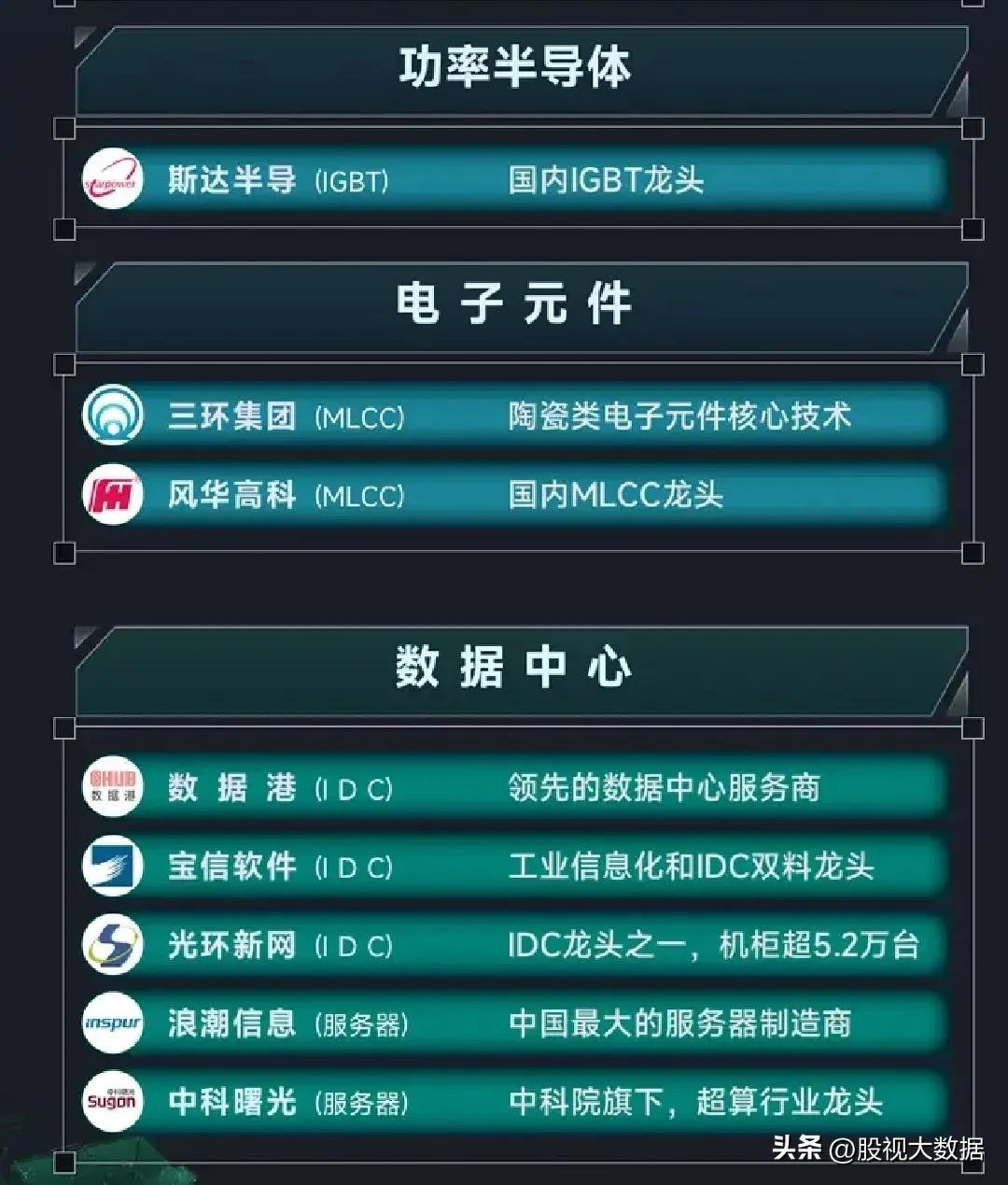 数据中心龙头代表:(5家)