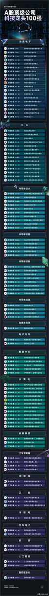 最新出炉,A股顶级科技龙头100强名单!(各行业细分龙头)