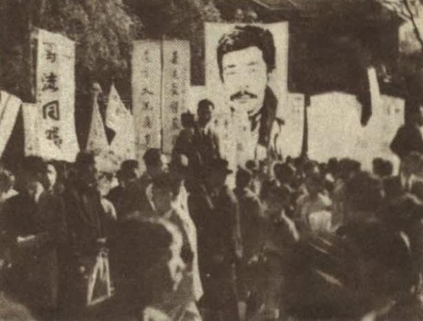 鲁迅先生的灵柩出殡时,上海人民冲破政府的多方阻拦,自动参加送葬者三万余人。