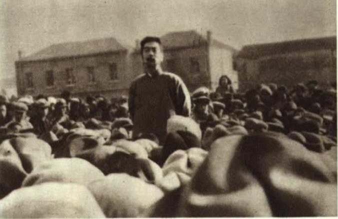 1949年十月十九日是鲁迅先生逝世13周年,俗念作家西蒙诺夫在鲁迅先生幕前演说。