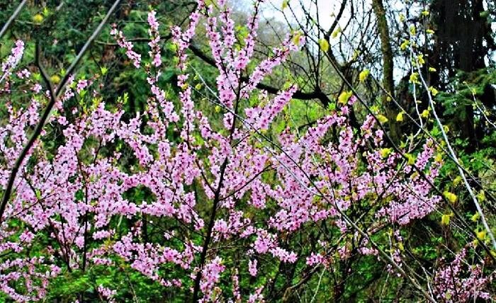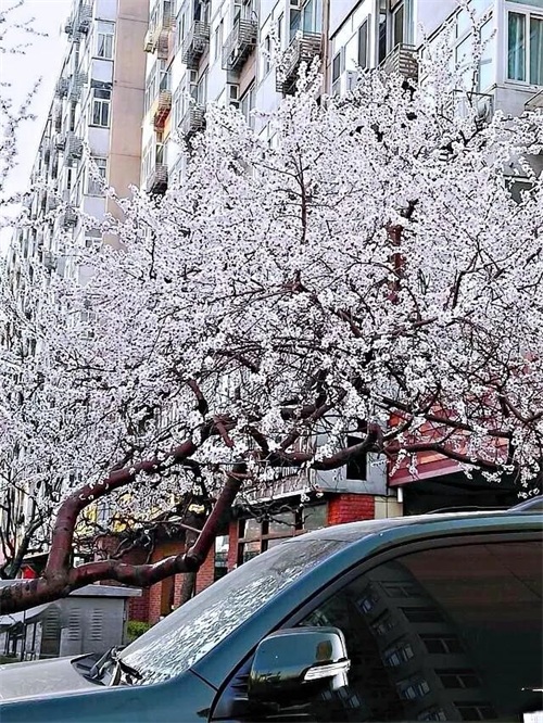 山桃比杏树、紫丁香早开花8天左右,乍暖还寒的3月中下旬,山桃芽苞在枝干中悄然鼓起,随着气温上升,展示出艳丽的花朵,在早春特别显眼。夏日枝干繁茂,婀娜多姿,秋天果实累累,挂满枝头,冬日紫红色的树干,油光发亮,映雪增辉。会给公园、绿地、小区、庭院景观平添几分魅力。
