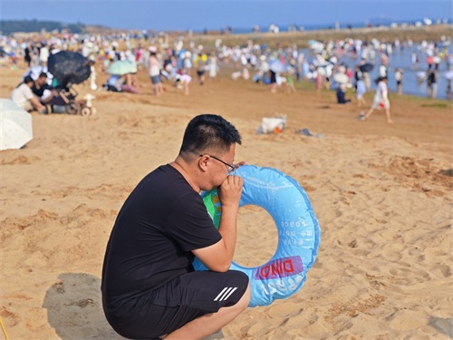给保险圈充足气,准备洗海澡喽!