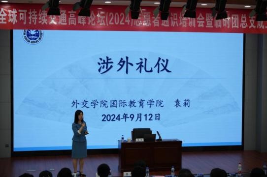 同时,北交大中青博联项目助理邵非为志愿者们进行了通识培训,外交学院国际教育学院院长袁莉为志愿者们进行了外交礼仪培训。