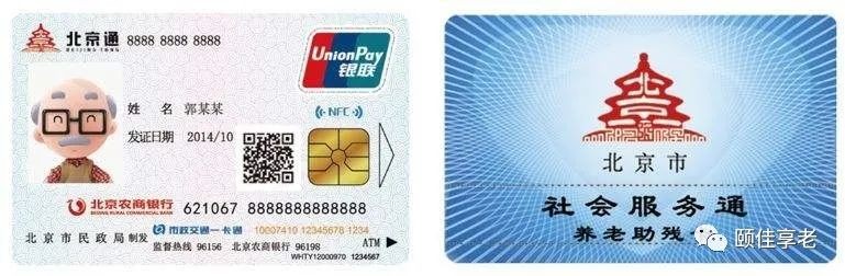 它是北京市60岁以上老年人享受的社会优待、社会福利、社会服务等政策与服务的身份凭证。同时也是一张集金融功能、津贴补贴发放、市政交通一卡通等多功能于一体的智能IC卡。