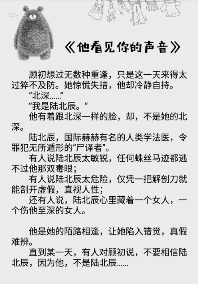 男主双胞胎的身份扑朔迷离,一本书只有一个案件有些单调。不过描写还是很详实细腻的,法医破案甜宠文集为一体