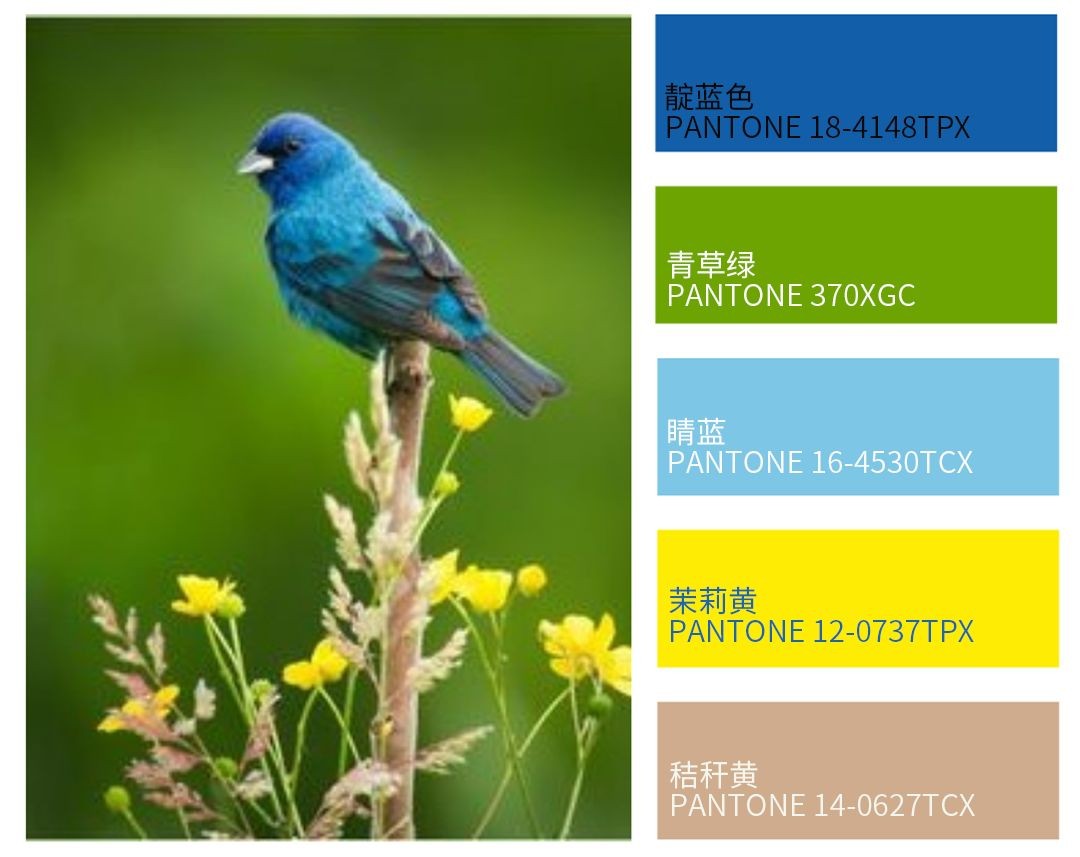 靛蓝色和晴蓝通过明度的变化,增加了层次感和立体感。而青草绿、茉莉黄等色彩的加入,则让色彩更加丰富,同时达到了冷暖平衡的效果。