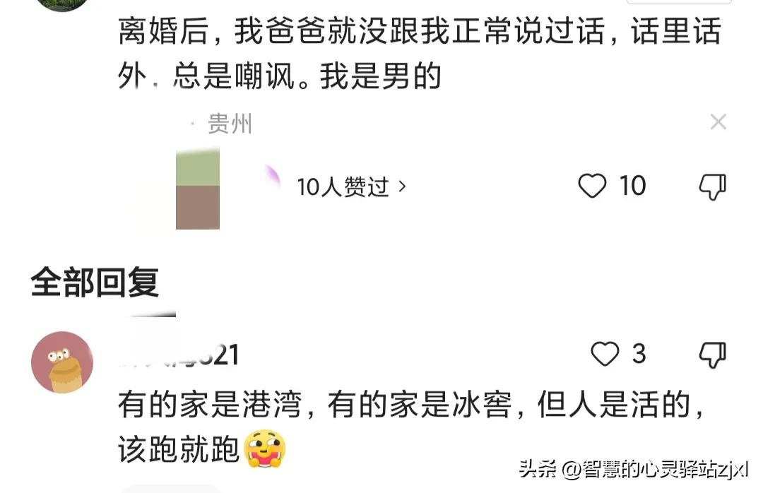 6. 离婚后,我爸爸就没跟我正常说过话,话里话外,总是嘲讽。我是男生。