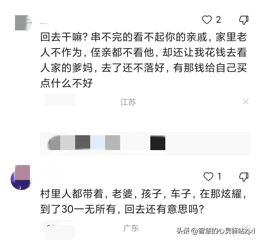 15. 村里人都带着老婆,孩子,车子在那炫耀,到了30一无所有,回去还有意思吗?
