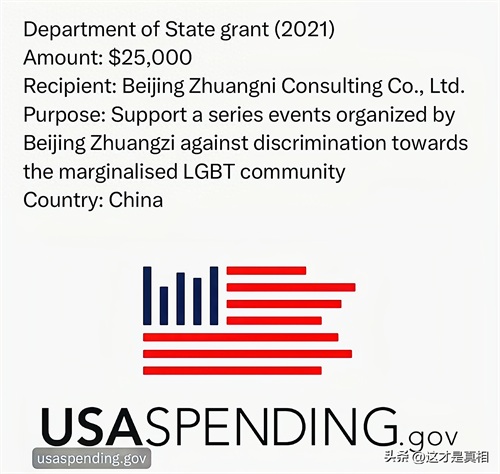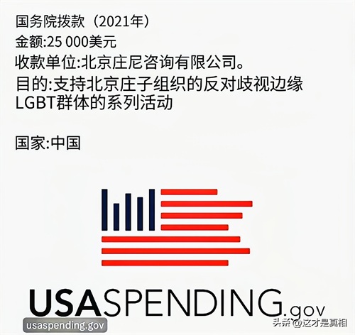 在马斯克的X平台上,一个名为RandoLand.us的账户公然披露资助我国有关LGBT组织,内容显示拨款方为:美国国务院,拨款的金额为25000美元,而收款方则是:北京庄尼咨询有限公司,其目的是为了支持北京庄尼组织的反对歧视边缘LGBT群体的系列活动。