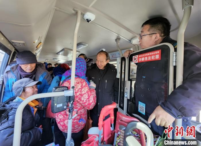 看到公交车驶来,一群大爷大妈肩扛编织袋,手拉花花绿绿的买菜车,蜂拥至车前。司机马同林从驾驶位上灵活跳下,到车门处或搀或扶帮村民们提拉年货、有序入座。大葱、鸡蛋、豆腐等山里特产,三五分钟就把车厢前后塞得满满当当。