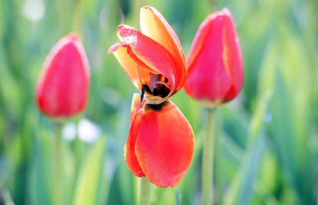 一般在春季,经过几个月的悉心呵护,郁金香将如期绽放。欣赏它们高贵的姿态和绚烂的色彩,别忘了及时将枯萎的花朵摘除,以保证球根为下一季的生长积累足够的养分。
