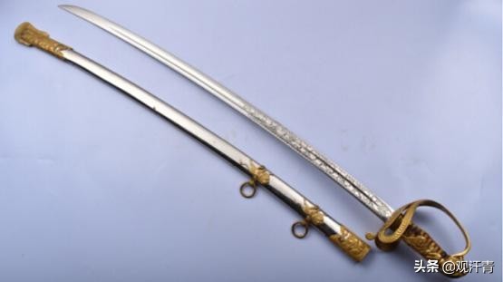 这把九狮刀造型比较奇特,因为它的刀柄镶了九个小狮子。这把指挥刀全长有94厘米,它真正制造的时间是1916年护国运动后的四年。