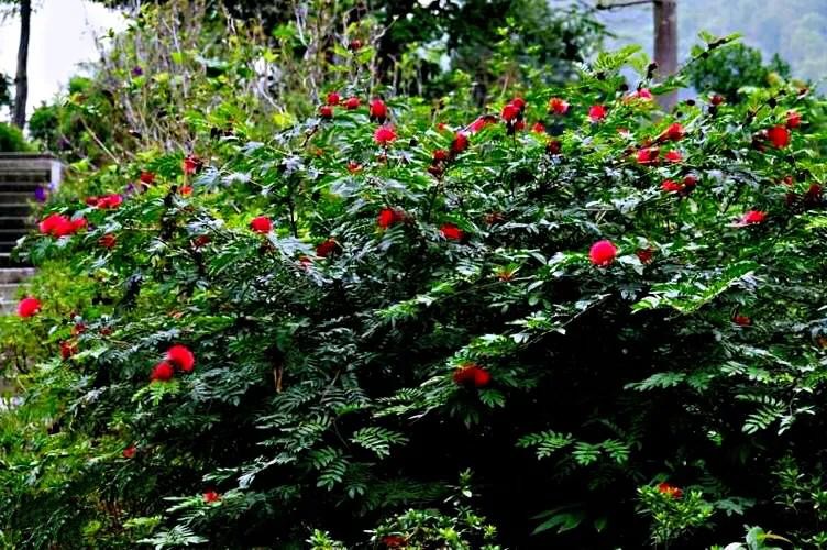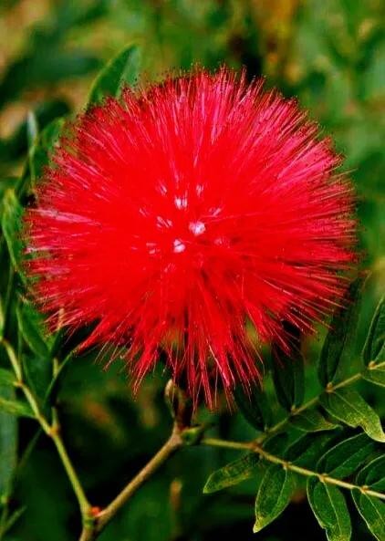 朱缨花~树姿优美,叶形翠绿雅致,绒花红艳满树,极具观赏价值