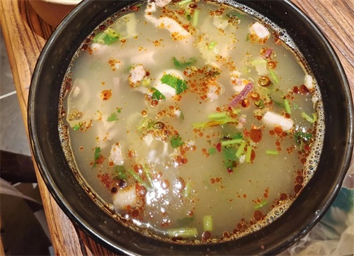 羊杂料多,汤汁满满,外加饼丝,堪称绝配。需要注意一点:必须趁热吃,否则就失去应有的味道。
