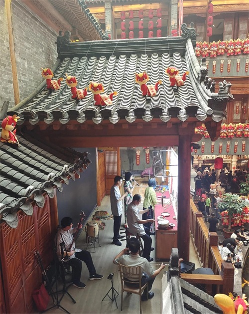 在唐山宴的用餐区域,作为非物质文化遗产的唐山皮影戏,现场表演,身临其境,如醉如痴。