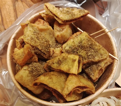 烤猪蹄烤的是外焦里嫩,满满的胶原蛋白,加入少量的辣椒孜然,别提多好吃了,就是价格有点贵,25元半只。