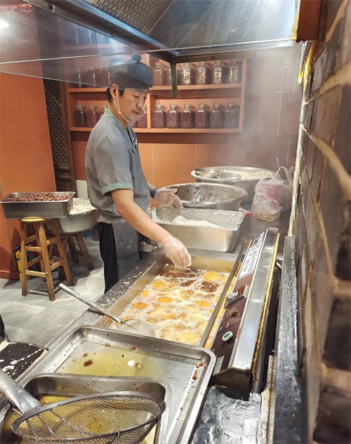 小山炸糕,非遗产品,现场制作,炸的是外黄里嫩、香味扑鼻。