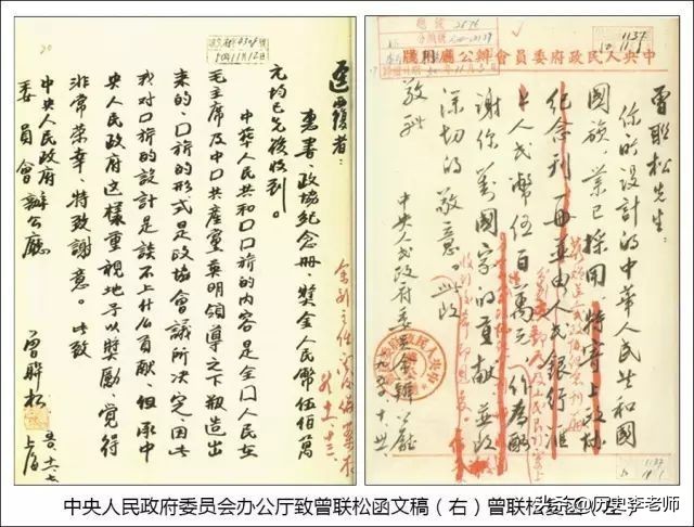 1949年9月27日,中国人民政治协商会议第一届全体会议上,正式决定采纳曾联松设计的“红底五星旗”方案,并将其改名为“五星红旗”,同时删除大五角星中的镰刀斧头图案。不过,曾联松当时并不知道自己设计的图案当选。