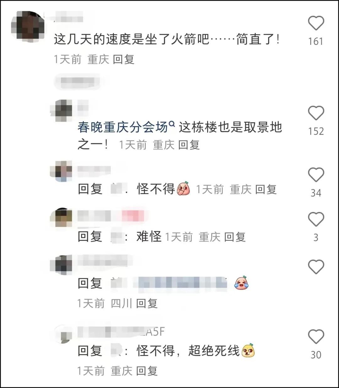 这一消息的传播,更让网友坚定了自己的想法,甚至有网友猜测:2025年春晚重庆分会场”重庆陆海国际中心大楼“可能是取景地之一!这也难怪!它的建设速度如同坐了火箭一般迅猛。