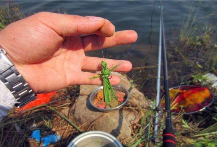 使用蚂蚱作为钓饵的时候,我们也可以使用一些青草打窝,因为不打窝很难吸引草鱼进入我们窝点。