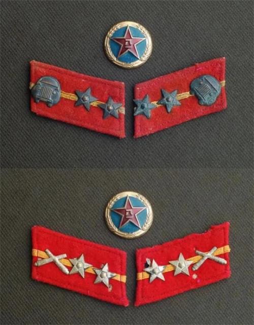 由上到下分别为:汽车兵中士军衔、炮兵中士军衔。
