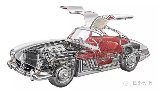 其实奔驰之所以发明向上开启车门实在是迫于无奈,因为设计300SL时,为保证底盘的高刚性,在底盘的左右两侧设置了两根粗大的平行梁,结果导致无法安装常规车门,无奈之下,才想出了向上开启车门的创意,可以说设计师鲁道夫·威廉哈德是打破了人们对车门的传统思维。