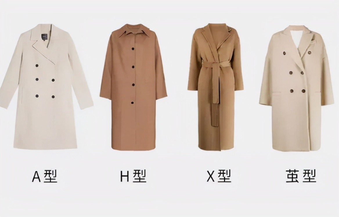 一般来说,大衣或者风衣都有这四种经典版型,A型、H型、X型、0/茧型。这四种是最经典,也是最不容易过时的版型了。