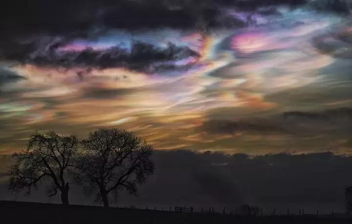 珠母云的成因:珠母云常见于极地区域,会出现在往赤道方向远至英格兰南部的地区。形成于距地面近两万多米、极度寒冷的平流层底部,由硝酸水合物以及冰晶构成。2016年2月2日罕见珠母云出现在英国英格兰北部和苏格兰部分地区傍晚的天空中,许多当地的摄影师都纷纷用相机记录下这美丽罕见的景象。