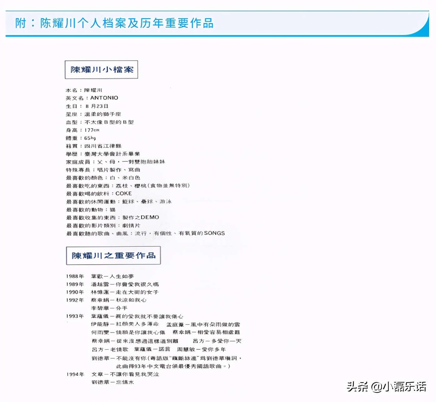 《人生如梦》是陈耀川第一首正式发表的作品,收录在叶欢《放我的真心在你的手心》(1988)专辑当中,同时也是电影《倾城之恋》的插曲。但谁也没有料想到,陈耀川首次发表的作品就大获国语流行歌坛乃至广大乐迷的青睐,随即入围金马奖最佳电影插曲,而当年的陈耀川也不过刚刚二十岁出头,说他是颇具潜力的创作新秀一点也不为过。