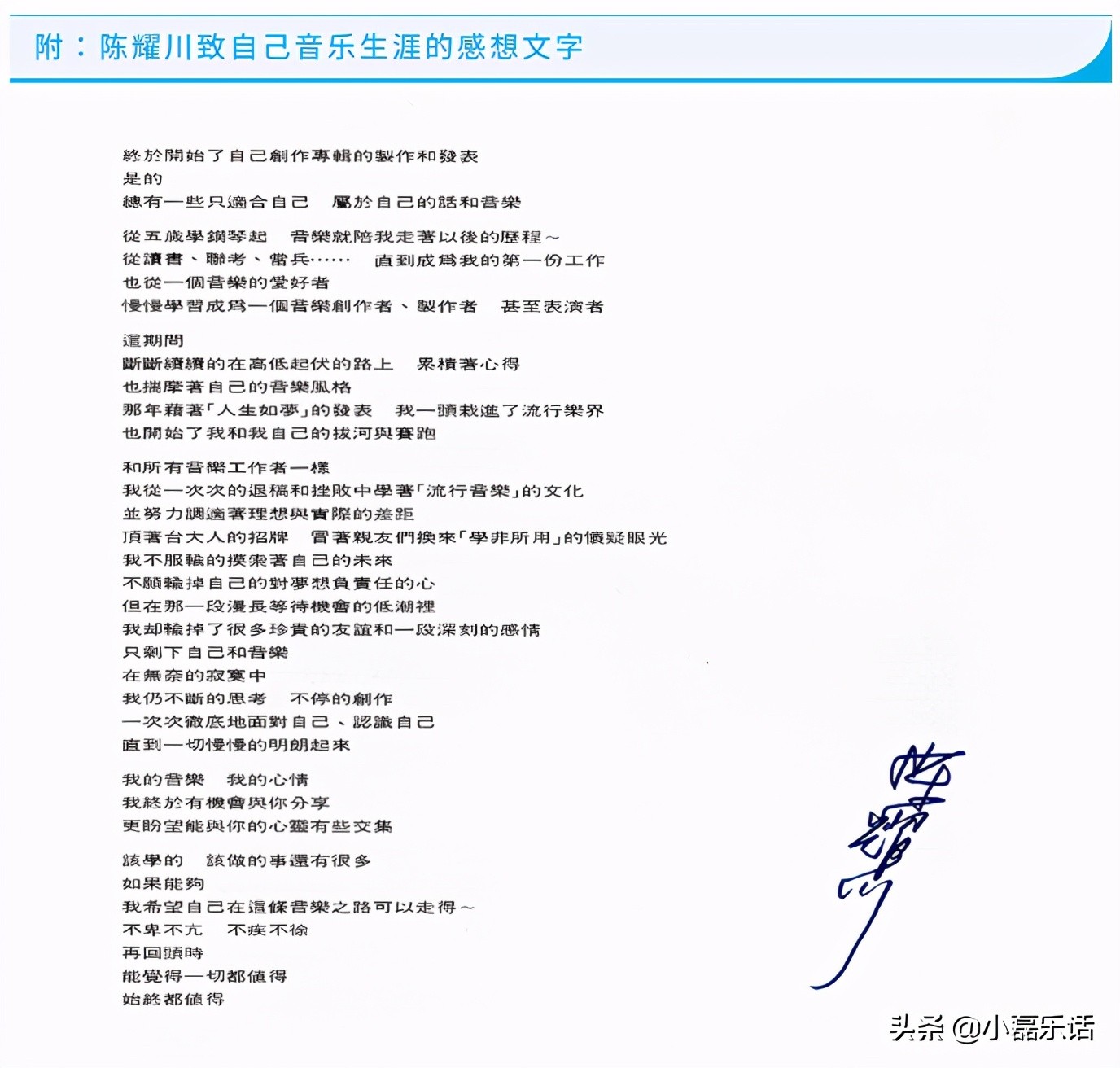 在歌坛活跃多年的陈耀川,从专业的幕后创作再到以制作人的身份参与专辑的执行标准,再以歌手的身份全新出发,继而让自己“诚实”的声音被大众听见......凡此种种我们看到的是陈耀川对于音乐事业的执着与热爱,但说到底,也是他始终坚守自己的初心,才能够在音乐这条路上走的很远,我想当他回眸这段历久弥新的音乐记忆,也应该觉得一切的努力与付出都值得了!