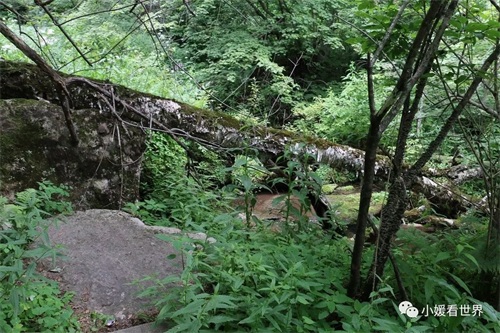 其实来到这里之前,有一个原始森林的入口,上面挂着牌子,写着“原始森林,全程2-3小时,请合理安排时间”类似的话,如果不熟悉,就不要贸然进去,还是有一定危险性的。从九天瀑布旁边的上山口上去,上边没有人工修的台阶,都是天然石头组成,路面越来越窄,时而被倒下的大树拦住了去路,但总有小道会通向森林深处,我来到这里从始至终都没有游客从这里走,甚至连路标也没有,两旁的树丛,不时地来回晃动,也根本不知道是什么生物在丛林中穿梭,前后没有人,甚至听不到人群的声音,远处看不到路的尽头,身后走过的路也消失在草丛中,除了感受到原始森林的魅力外,只剩下恐惧了。不敢想象这如果是在傍晚,我一个人迷失在这森林中,是一种怎样的无助,会不会突然出现蛇或是狼,不敢再往前走了,转身原路返回至九天瀑布,看到瀑布旁休息的人群,这才松了口气,生怕后边有什么东西跟着我......