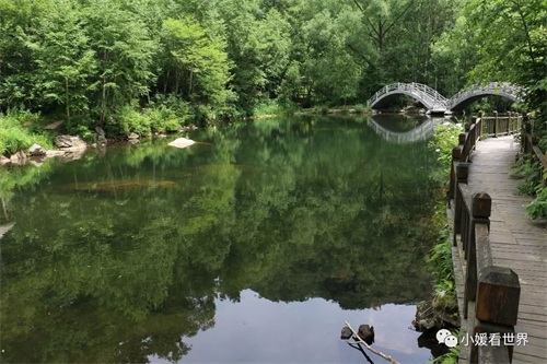 这里是景区内我最喜欢的景色之一,湖水清澈见底,与远处的拱桥相呼应,很大限度保留了森林的原始程度。