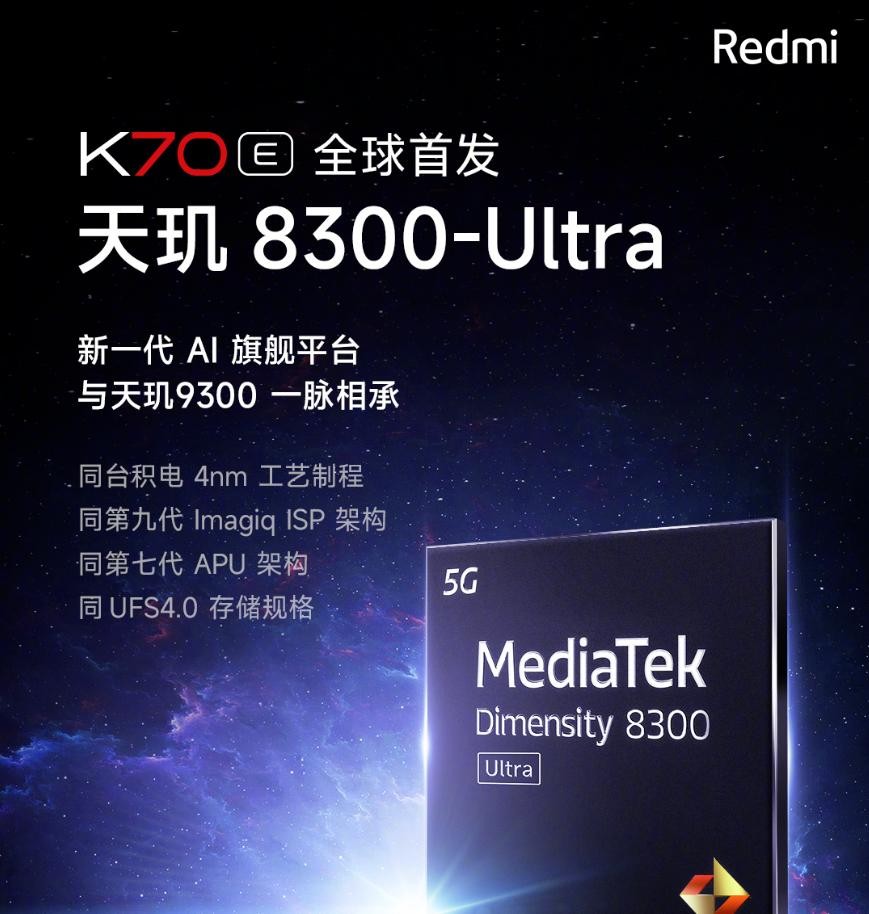 其实在发布会之前,很多人都猜到了,这次的天玑8300将会由红米进行首发,而在发布会上,红米官方也确认将由本月发布的红米K70E进行首发,甚至还在发布会上直接公布了惊人的跑分成绩和理论性能,这其实是放在过去不常见的,毕竟按照过去的惯例,中端芯片一般都会主要宣传自己的能效比有多好,直接像天玑8300这样公开表示性能有多好的,还是不常见的。