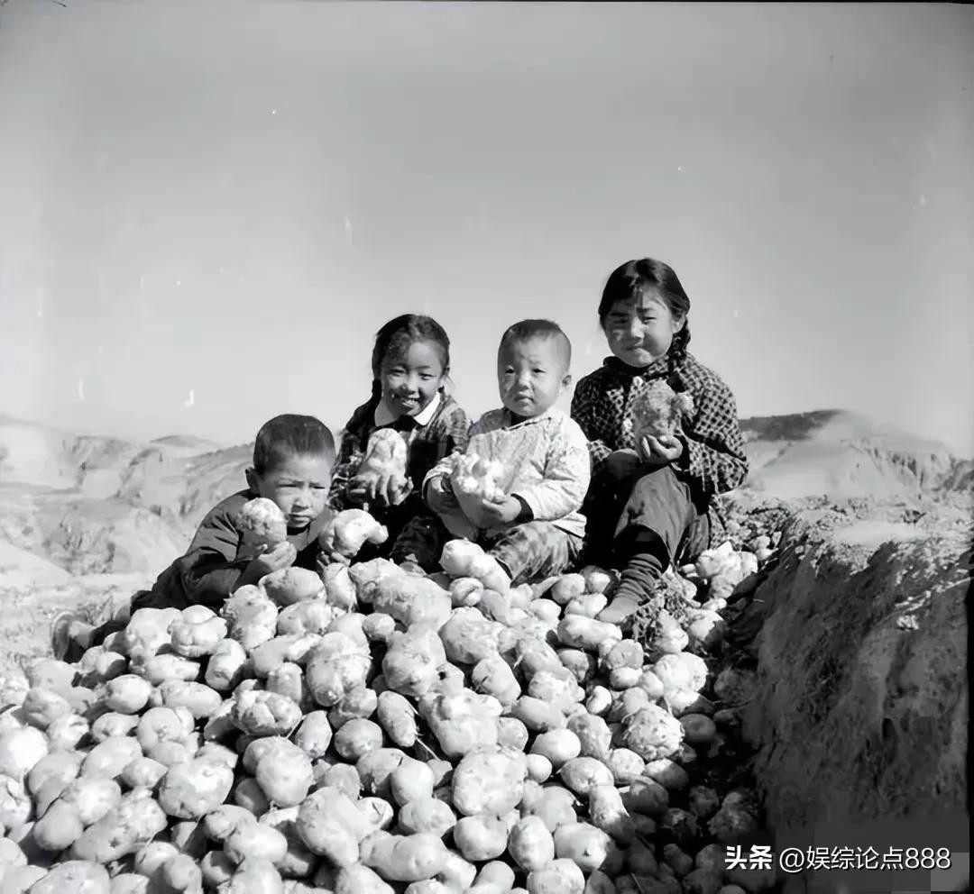70年代土豆大丰收,孩子们坐在土豆堆上,小脸绽着笑,脏兮兮的小手摩挲着“胖娃娃”,比谁捡到的最大,笑声在田间肆意回荡。