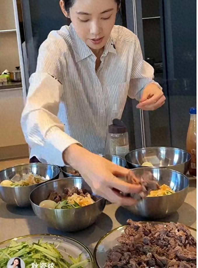 秋瓷炫的贤惠,不仅表现在她的厨艺上,更体现在她对待公婆的细致入微。而在端菜时,她第一个想到的不是自己和丈夫,而是先把冷面端给公公婆婆吃。这种“先长辈,后自己”的习惯,不仅是中华传统孝道文化的体现,更是一种高情商的表现。