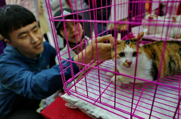 "哇!这只小狗的眼睛好大好黑,眼神好无辜!"现场聚集着百余位爱心市民,他们围在笼子前,看到合眼缘的小动物,不时询问着领养的方式和喂养方法,甚至忍不住将手伸进笼子里摸一下,而一些亲人的小动物则乖乖享受着陌生人温柔的爱抚。