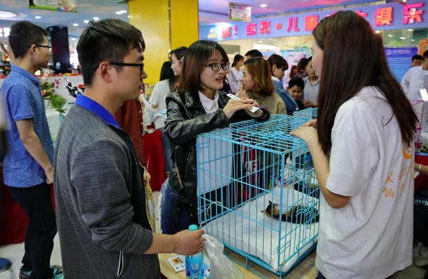 据悉,22日的全国同日领养日共有44个城市参加,是迄今为止全国同日领养日规模最大的一次,郑州是其中的一个参与城市。虽然周末气温骤降,大风袭来,但领养现场的氛围却异常火爆。"想领养汪星人吗?来看看这只狗狗吧!它性格温顺,超黏人!""这只小猫两个月大,妥妥‘萌萌哒’傲娇妹子一个!""免费领养,但前提是你必须是个好铲屎官"……下午2点的活动现场,记者看到每一个被关在笼子里的小动物身后,都有那么一两位志愿者忙着在为小动物"代言",不遗余力的向众多围观者介绍着小动物的性格、喜好和特长,并派发"用领养代替购买"的宣传页。