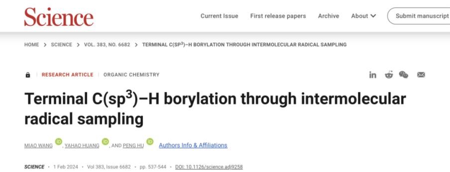 今年2月,中山大学胡鹏教授团队在Science杂志上报告了一种光催化分子间自由基采样方法,在相关领域实现突破