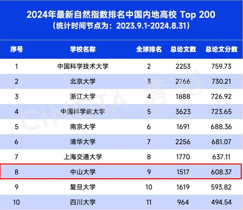 “最新自然指数排名”揭晓!中山大学位居全球第9位、全国第8位!