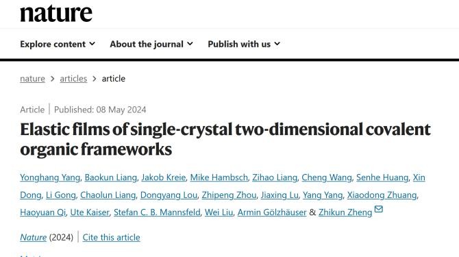 今年5月,Nature刊登中山大学郑治坤教授团队科学成果:弹性晶体膜