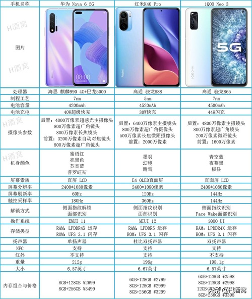接下来我给大家聊一聊三款支持侧面指纹识别,性价比很高的手机,分别是:华为Nova 6 5G、红米K40 Pro、iQOO Neo3。